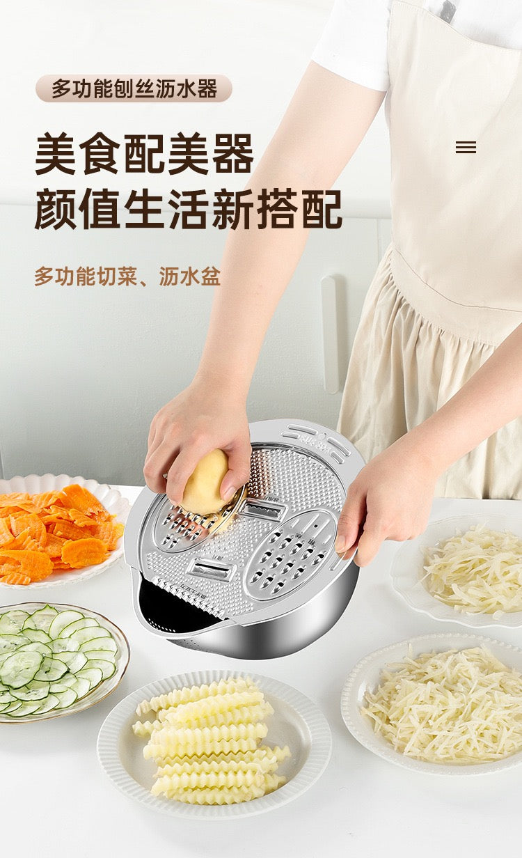 304 Stainless Steel Multi-Functional Vegetable Cutter & Drainer – Master Chef Skills Effortlessly!