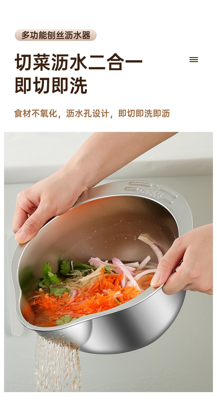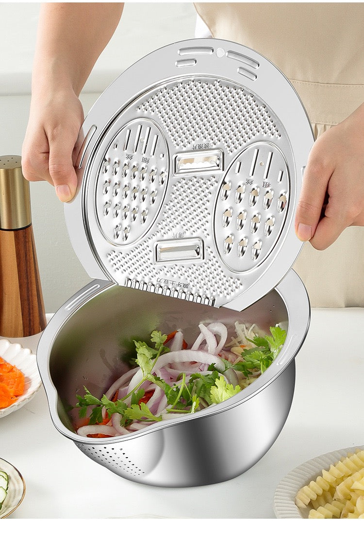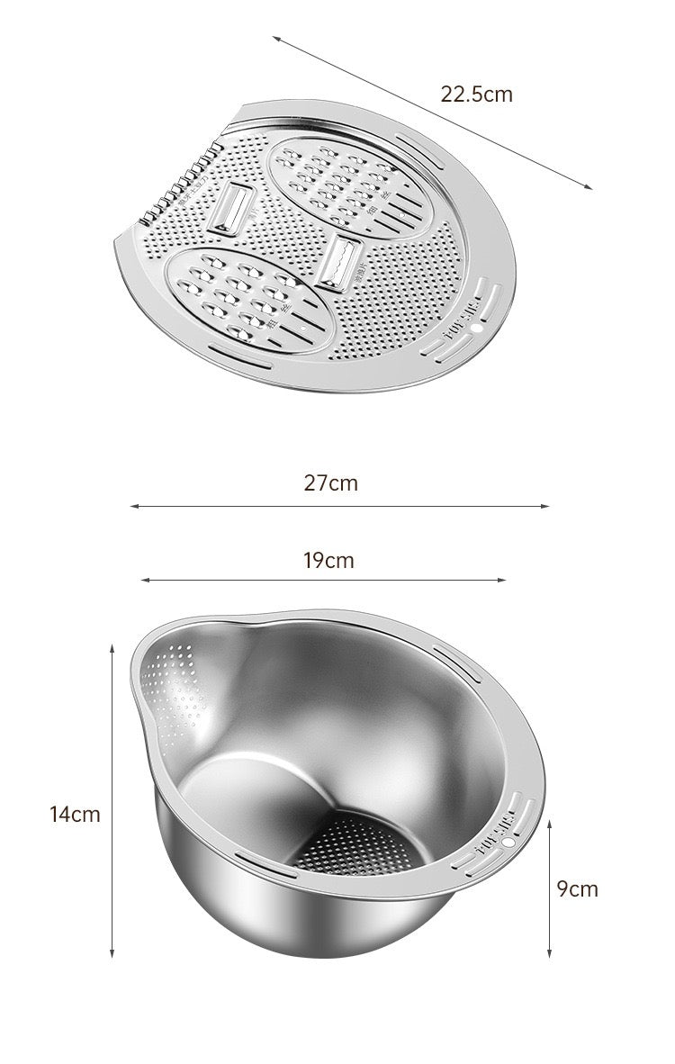 ✅ All-in-One Versatility – Grate, slice, shred, drain, and even mix salads in one sleek tool. Perfect for veggies, cheese, fruits, and more!