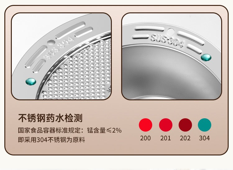 ✅ Hygienic & Easy Cleanup – Made of rust-proof 304 stainless steel, it’s dishwasher-safe and resists odors/stains. Drain water instantly after washing!